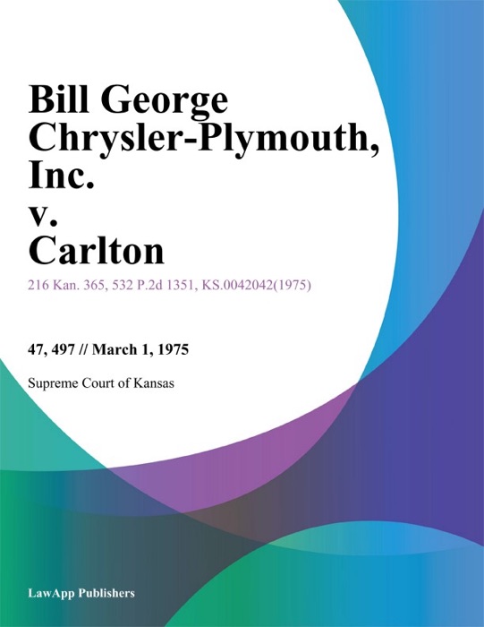 (DOWNLOAD) "Bill George Chrysler-Plymouth, Inc. v. Carlton" by Supreme Court of Kansas * eBook PDF Kindle ePub Free
